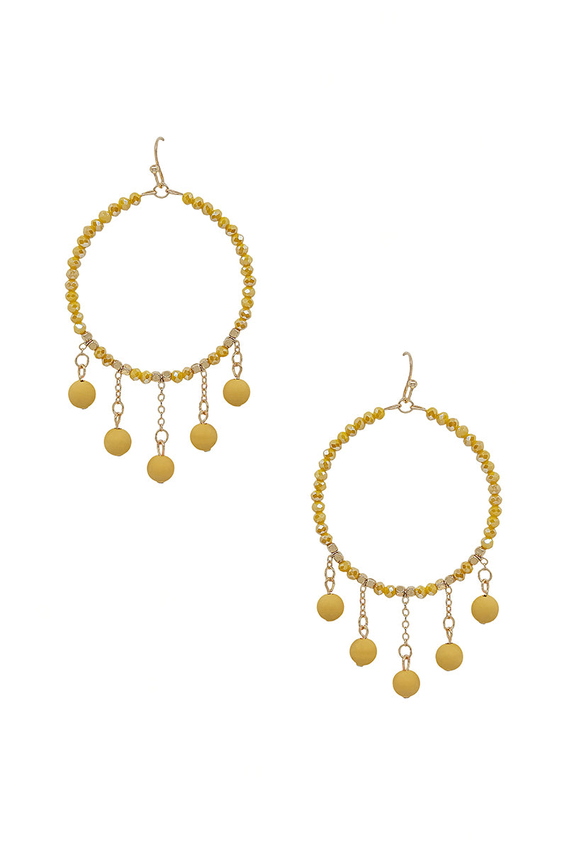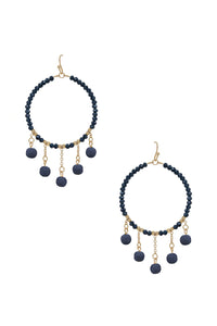 Imported CLAY BALL CHARM ROUND BEADS EARRING 2 Inches Navy.Mustard.Pink.Mint.Black.Brown.Natural FBJ