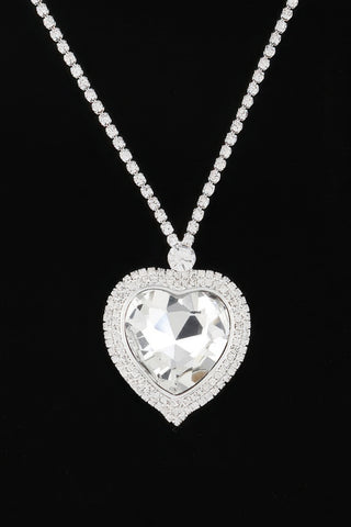 Product Description: This jeweled crystal heart necklace offers a refined romantic touch with subtle sparkle. Designed with a balanced pendant size, it sits comfortably at the neckline. The crystal detailing adds elegant shine without overwhelming the look. Lightweight and easy to wear. A timeless piece perfect for everyday or occasion styling.
