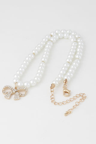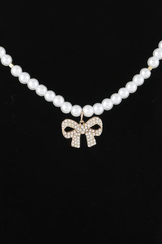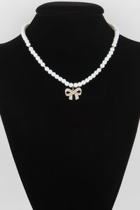 Product Description: Chic and feminine, the White Pearl Bow Necklace adds a touch of grace to your jewelry rotation. Featuring a delicate bow detail accented with pearls, this necklace is designed to complement both modern and romantic styles. Its 16-inch length sits comfortably at the collarbone, ideal for layering or wearing alone. Whether you’re accessorizing a special occasion or elevating your everyday look, this necklace offers subtle sophistication.