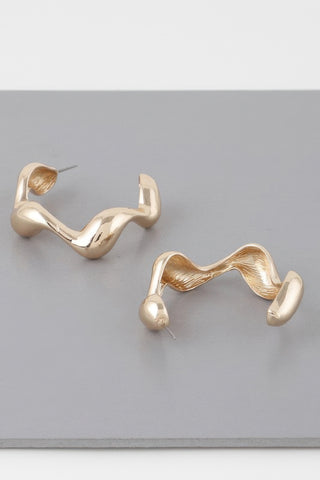 Product Description: With fluid, sculpted curves, the Liquid Wave Hoop Earrings embody effortless motion and shine. Their organic shape and polished surface reflect light beautifully, adding a touch of modern artistry to your accessories collection. Ideal for those who love jewelry with a contemporary edge.