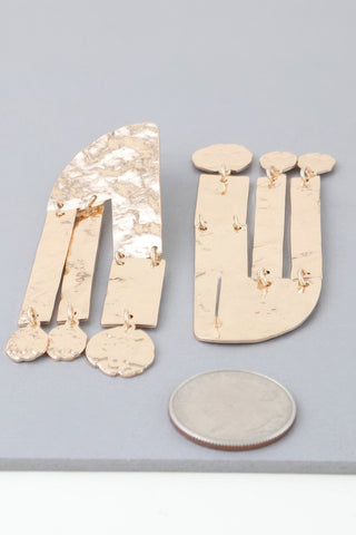 Get ready to shine with our Shiny Hammered Drop Earrings. Add them to your cart now and complete your look with a touch of elegance and sophistication!