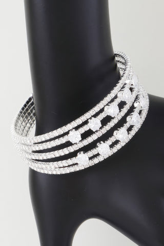 With its sparkling jewels and timeless cuff design, this bracelet brings elegance and glamour to any outfit. The combination of gold or silver with clear cubic zirconia offers a versatile, high-quality accessory that can be dressed up or down, making it a must-have for those who love adding statement pieces to their wardrobe.