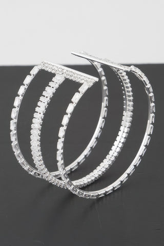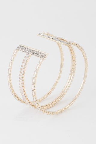 Product Description: Turn heads with the Wide Triple Crystal Cuff Bracelet—designed for maximum sparkle and bold style. Featuring three rows of glittering crystals set on a wide metallic band, this statement cuff is both structured and stunning. The open back allows for easy wear, while the dazzling finish makes it ideal for formal events, nights out, or anytime you want to shine. Bold yet elegant, it’s the ultimate finishing touch.