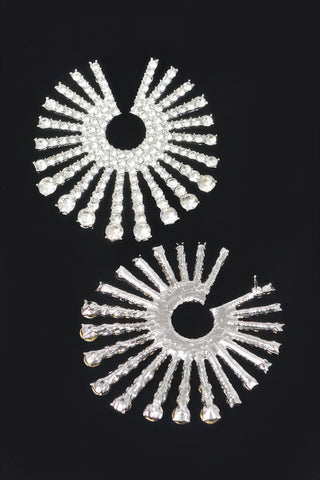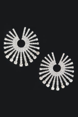Product Details: Approx. 2" x 2.25" Circular fan rhinestone design Lightweight construction Post back closure Elegant shimmering finish