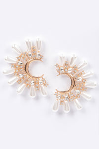 Product Description: Elevate your elegance with Pearl Radiance: Gold & White Elegance, a captivating pair of earrings that combine classic charm with modern sophistication. These eye-catching earrings feature a graceful blend of lustrous pearls and sparkling rhinestones, set in a radiant gold-tone finish. The elongated silhouette offers refined movement and a flattering shape that frames the face beautifully. Perfect for weddings, evening events, or adding a polished touch to everyday wear, they deliver timeless beauty with a touch of glamour. Designed to dazzle, these earrings are an essential addition to any jewelry collection.
