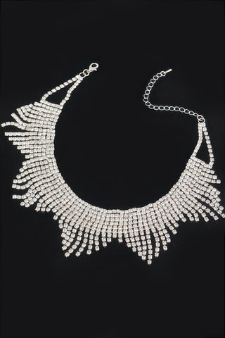 Product Description: Rhinestone Drop Choker Necklace brings glamour and dimension to your neckline. Measuring approximately 15.5 x 1.5 inches, this piece features a high-shine band with cascading rhinestone strands that create elegant movement. Perfect for evening events, special occasions, or statement dressing, it turns simple outfits into standout looks. The adjustable clasp allows for a custom fit while ensuring comfort. Pair it with off-shoulder tops or strapless dresses to highlight its silhouette. It delivers sparkle without being heavy, making it an easy favorite for formal styling. Designed to shine every time you wear it.