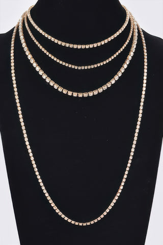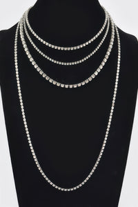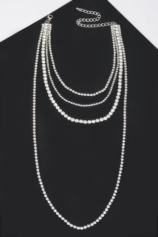 Product Description: This multi-layer rhinestone necklace delivers layered sparkle with a refined finish. Designed to sit comfortably along the neckline, it creates depth and visual interest. The rhinestone detailing adds polished shine without overwhelming the look. Ideal for evening wear or elevated styling. A statement piece with elegant versatility.