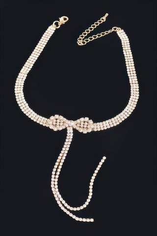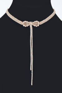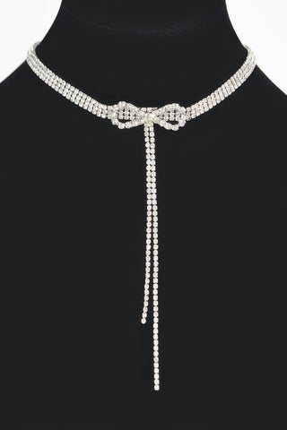 Product Description: Delicate and statement-making, the Rhinestone Bow String Choker Necklace offers a playful take on classic sparkle. The slim, flexible band rests comfortably around the neck, while a rhinestone-encrusted bow adds feminine charm. Measuring approximately 10.5", it’s ideal for layering or wearing alone with a sleek neckline. Perfect for date nights or special events, it pairs effortlessly with dresses or minimalist looks. It’s a charming accessory with elegant edge.