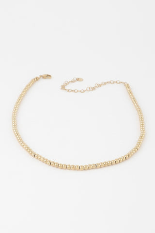 Product Description: The Simple Beaded Necklace offers understated elegance with its clean, minimalist design. Featuring evenly spaced polished beads, it sits gracefully along the neckline for a refined, everyday look. This versatile piece can be worn alone for subtle charm or layered with other necklaces for a personalized style statement.