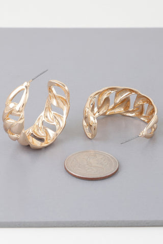 Product Description: Refined yet bold, the Curb Braid Chain Hoop Earrings deliver a fresh take on timeless design. Measuring approximately 1.2" in diameter, these gold-tone hoops feature a distinctive curb braid texture that adds both depth and dimension. Their compact size makes them perfect for daily wear, while the intricate chain-inspired detail sets them apart. Whether paired with denim or dressed up for an evening out, these earrings offer versatile elegance with a subtle edge. Designed to make a statement without overwhelming, they’re a must-have addition to any curated jewelry collection.