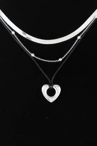 Multi Open Heart Necklace - Silver black