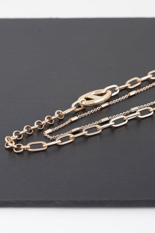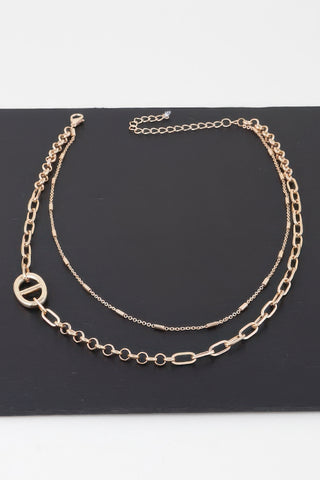 Double Link Chain Choker Necklace - Gold