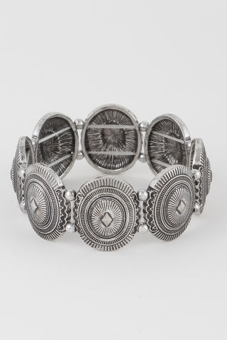 Product Description: The Multi Vintage Plate Cuff Bracelet channels antique charm with a bold, contemporary shape. Featuring layered plates with an aged finish, this cuff brings a curated, artisan feel to your look. The wide silhouette adds statement appeal, while its lightweight construction ensures comfort. Ideal for pairing with flowy silhouettes, earth tones, or denim, this bracelet adds artistic flair to any outfit.