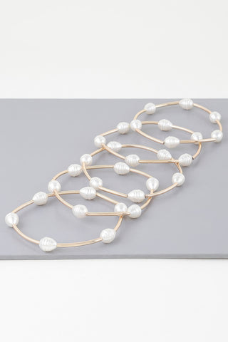 Multi Pearl Shell Tube Bracelet - Gold cream