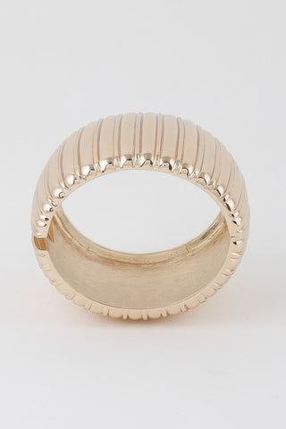 Wide Ribbed Cuff Bracelet - Gold