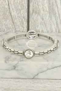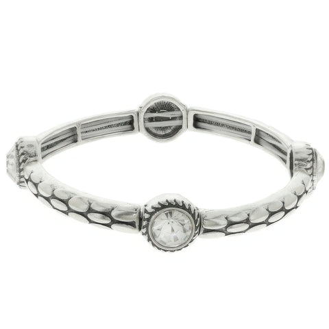 Western Jeweled Scale Pattern Stretch Bracelet - Silver.Sb