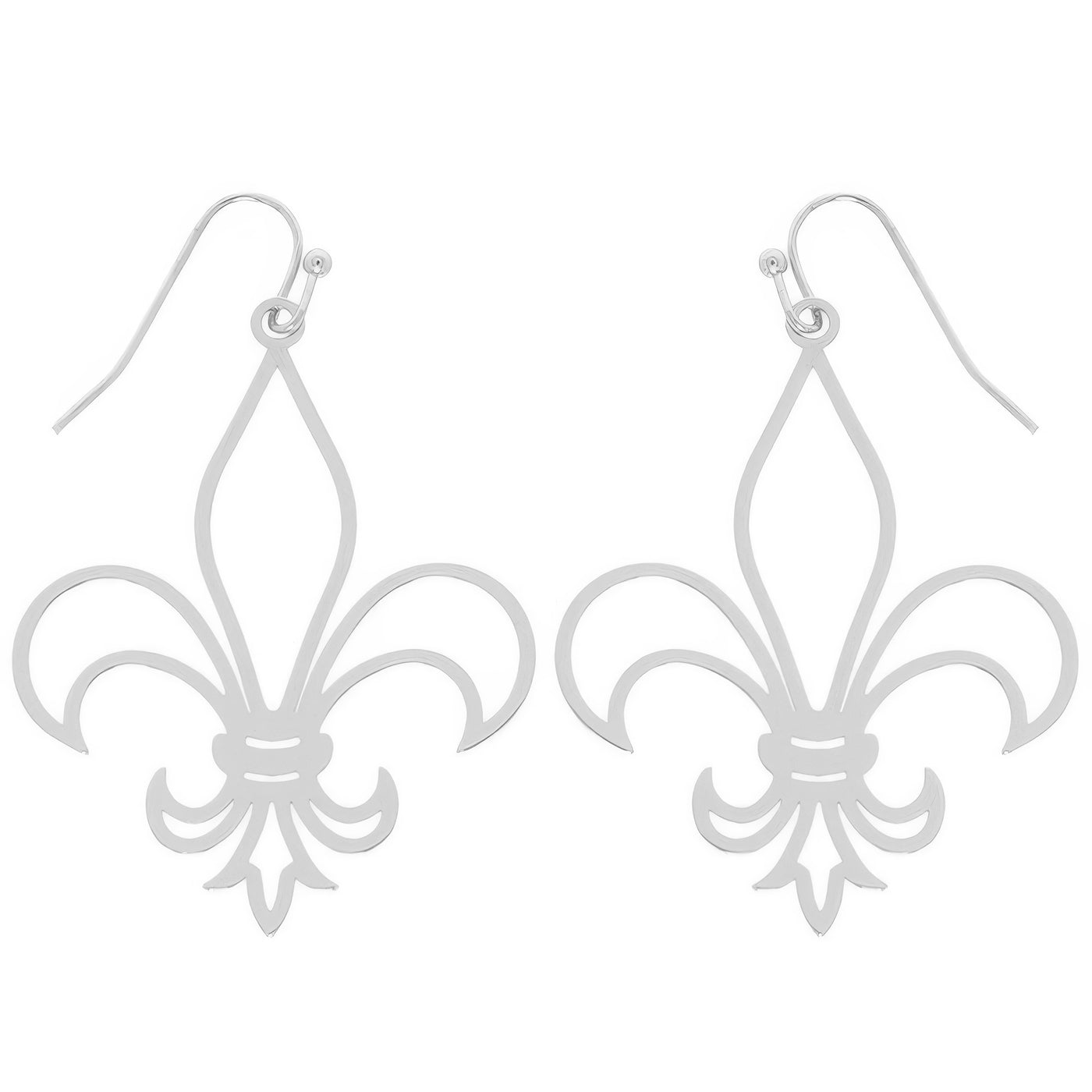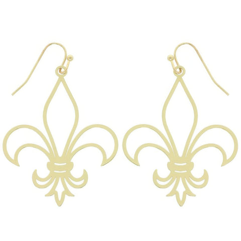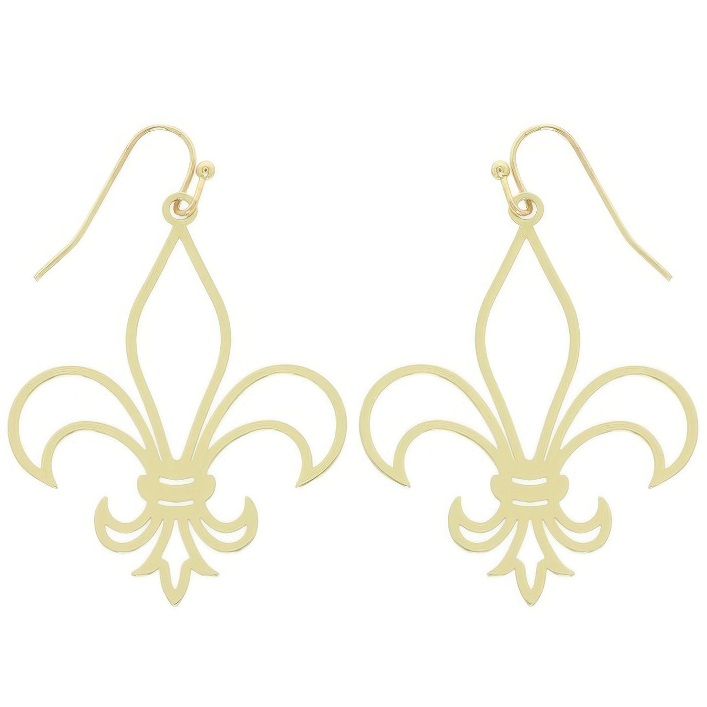Product Description: Elevate your accessory game with these fleur de lis cutout earrings in shimmering gold-tone and silver-tone metal. Designed to celebrate style and spirit, they’re ideal for festive occasions, gameday gatherings, or polished everyday wear. The intricate detailing offers a nod to heritage while maintaining a fresh, contemporary look. Their medium drop length ensures they make a statement without overwhelming your outfit. A chic and spirited addition to your jewelry lineup.
