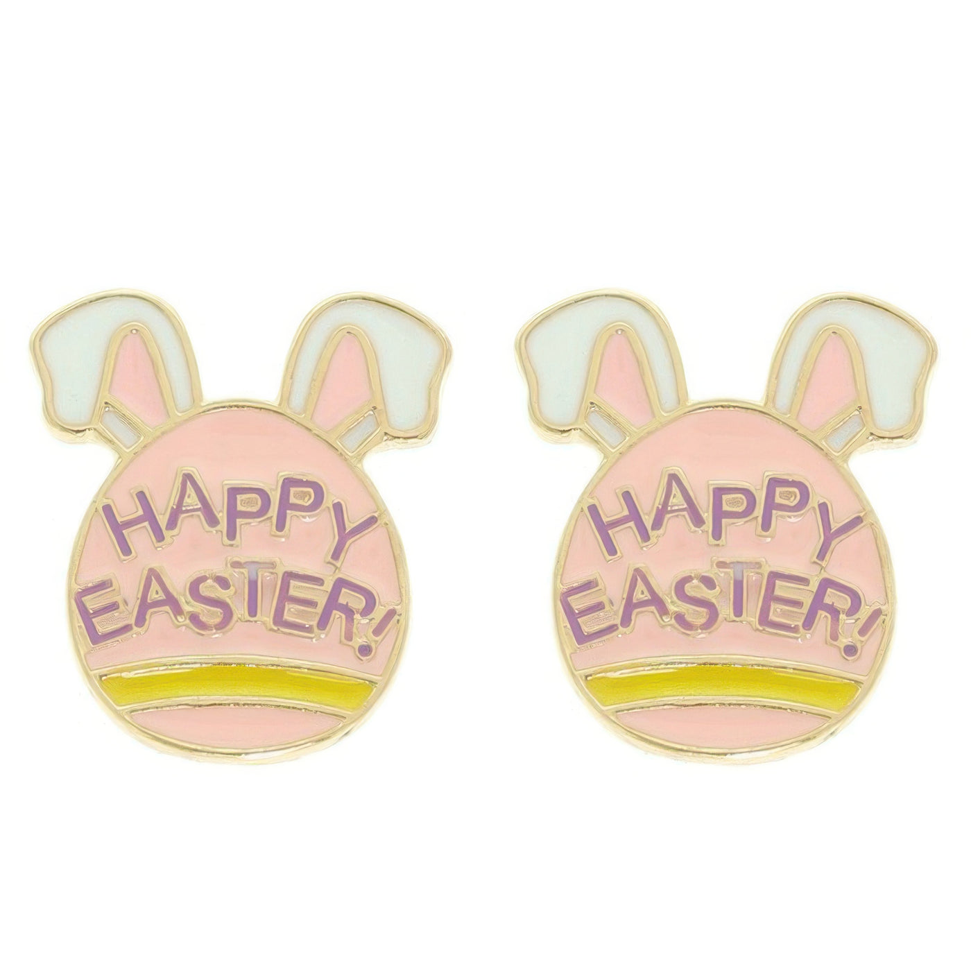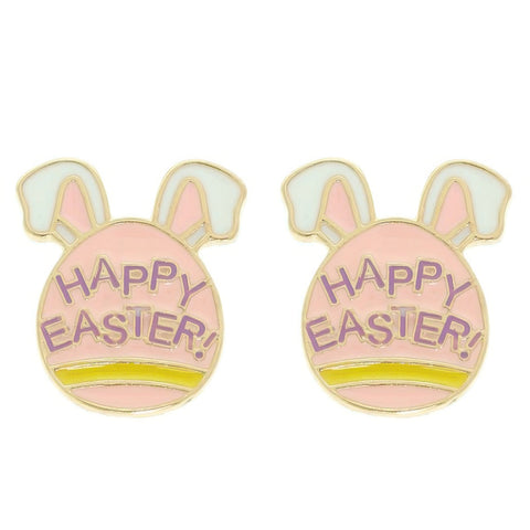 Product Description: Celebrate the joy of the season with these colorful enamel Easter egg earrings. Featuring bunny ears and a multi-color finish, these gold-tone studs add a cheerful pop to your spring accessories. Lighthearted and festive, they're perfect for Easter parties, church events, or spring brunches. These earrings are a sweet and playful addition to holiday-ready looks for all ages.