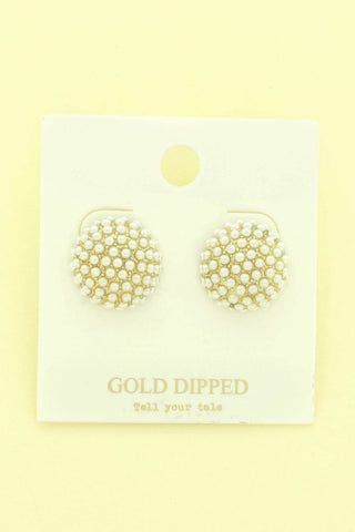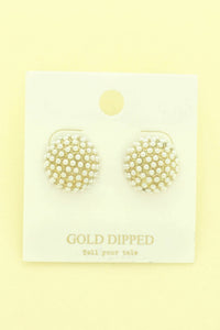 Product Description: Elegant and luminous, the Gold Plated Pearl Pave Sphere Ball Earrings deliver timeless glamour in a compact design. Featuring sparkling pearl pavé detailing set in radiant yellow gold plating, these stud earrings add graceful sophistication to your everyday or evening look. With their classic shape and polished finish, they’re a versatile choice for formal wear or refined gifting.