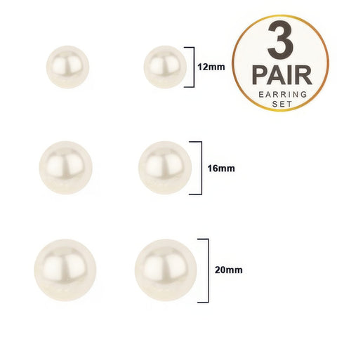 Product Description: Timeless and versatile, the 3-Pair Pearl Stud Earring Set offers classic beauty for every occasion. Featuring three graduated sizes of white faux pearls, each pair is set in polished gold-tone metal for a sophisticated finish. Whether you prefer a subtle accent or a bolder pearl statement, this set covers all your style needs. Ideal for daily wear, gifting, or elegant events, these studs bring effortless grace to any look.