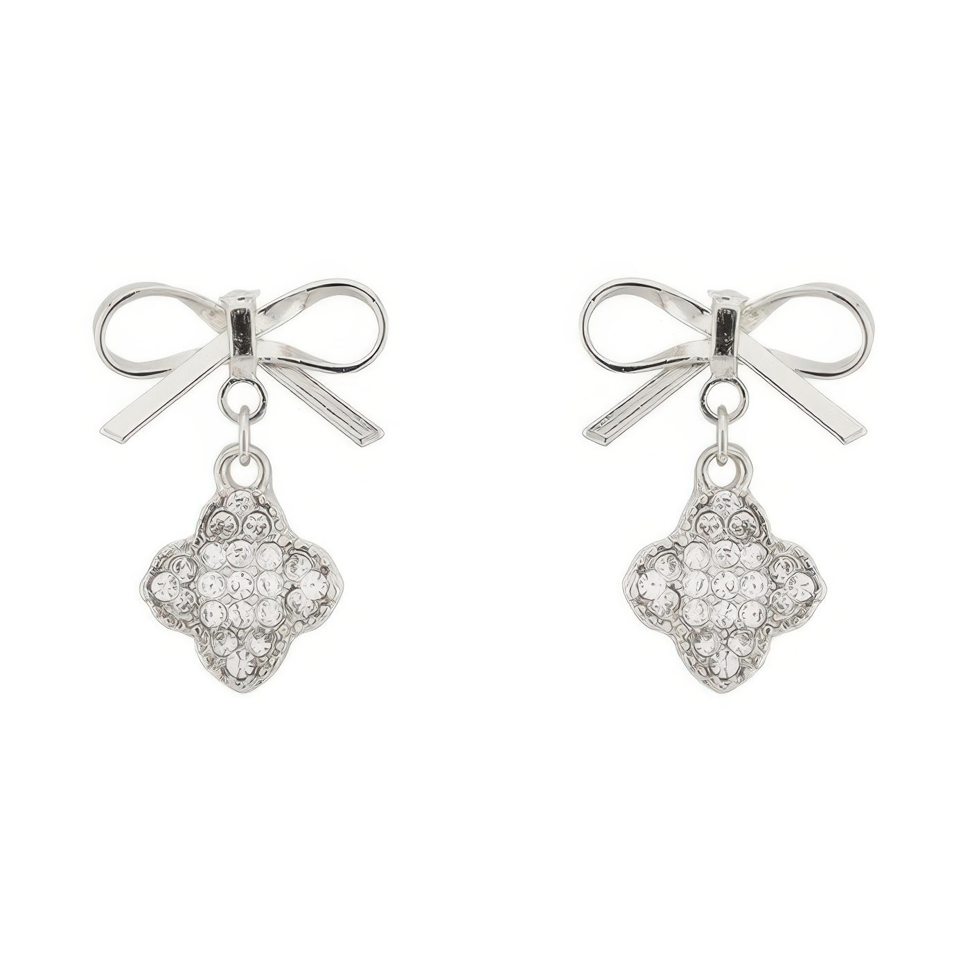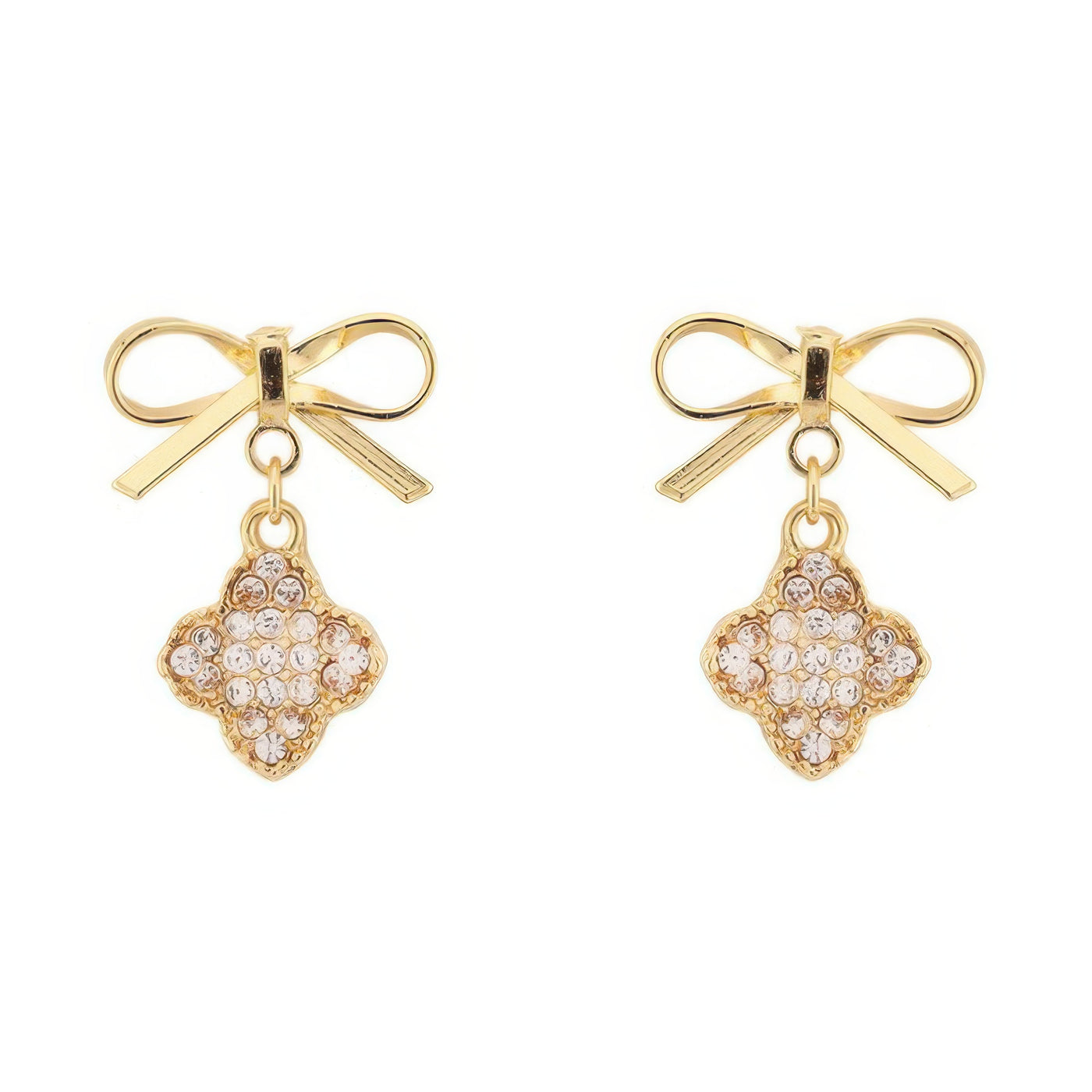 Short-tail bow design with pavé clover dangle