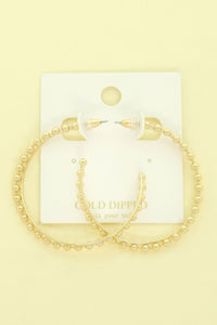 Product Description: These yellow gold-plated beaded ball hoop earrings strike the perfect balance between simplicity and statement. With sleek push-back closures and a row of polished beads, they offer a clean, modern finish that’s both versatile and stylish. Whether paired with jeans or a dress, these hoops bring just the right amount of shine to your everyday and evening looks.