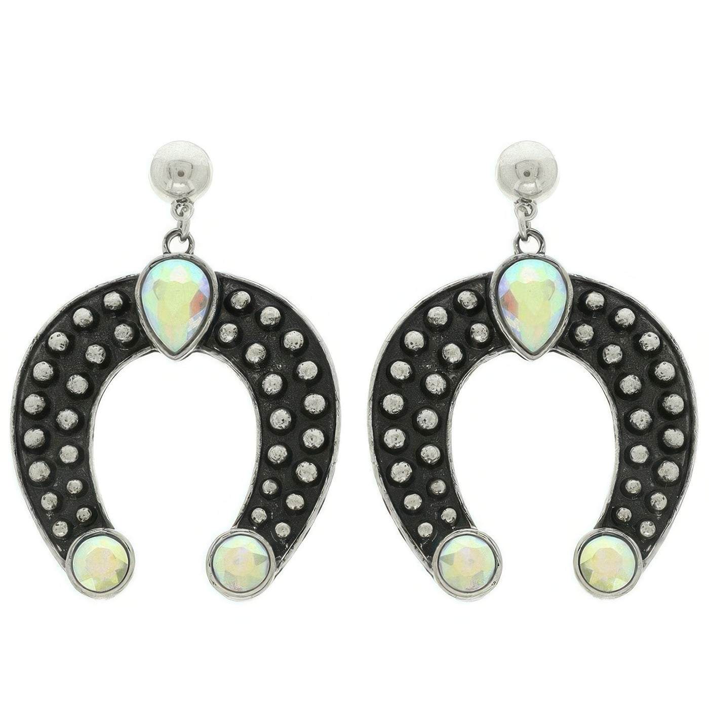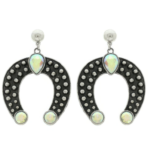 Product Description: These squash blossom concho earrings showcase a bold floral-inspired design with sparkling crystal embellishments. Crafted with a vintage western aesthetic, they balance cowgirl glam with timeless elegance. Lightweight yet eye-catching, they bring desert-inspired charm to festivals, rodeos, weddings, or everyday outfits. A statement accessory that captures the spirit of the Southwest, perfect for those who love unique western jewelry.