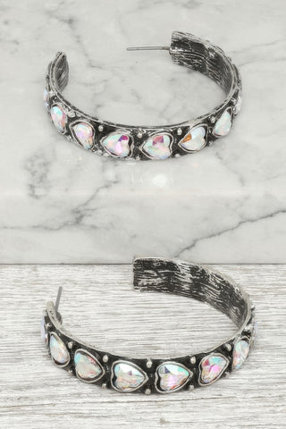 Western Heart Cut Crystal Hoop Earrings - AquaBlue.Sbab