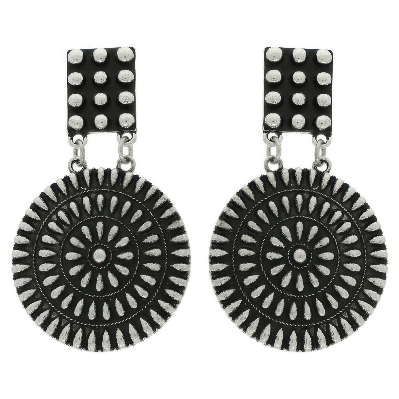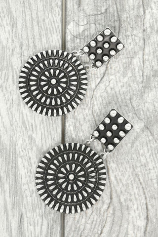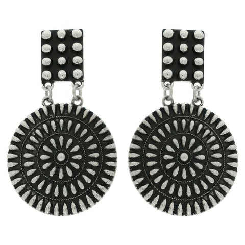 Product Description: Classic yet bold, these round disc concho earrings bring textured detail and rustic charm to your western look. Made in oxidized silver-tone metal, they feature a vintage-inspired finish that blends timeless style with modern appeal. Perfect for rodeos, festivals, or daily wear, these earrings provide a striking statement piece for cowgirls and fashion lovers alike.