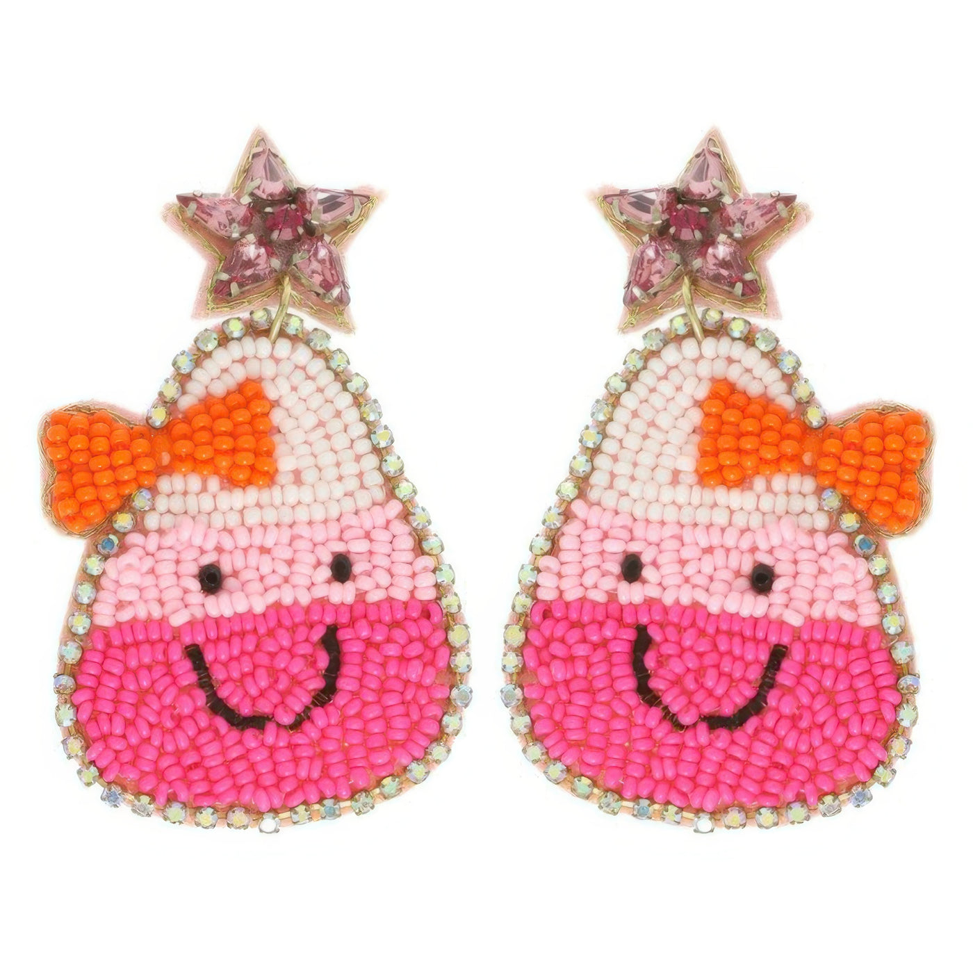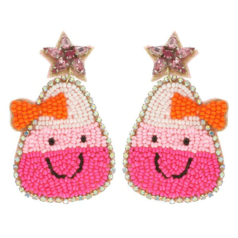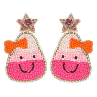 Product Description: Bring a smile to your spooky look with these candy corn dangle earrings. Designed with rhinestone and seed bead accents, plus a cheerful smiley face, they’re a fun and festive way to accessorize for Halloween events or fall festivities. Lightweight and colorful, they’re ideal for seasonal styling or gifting.