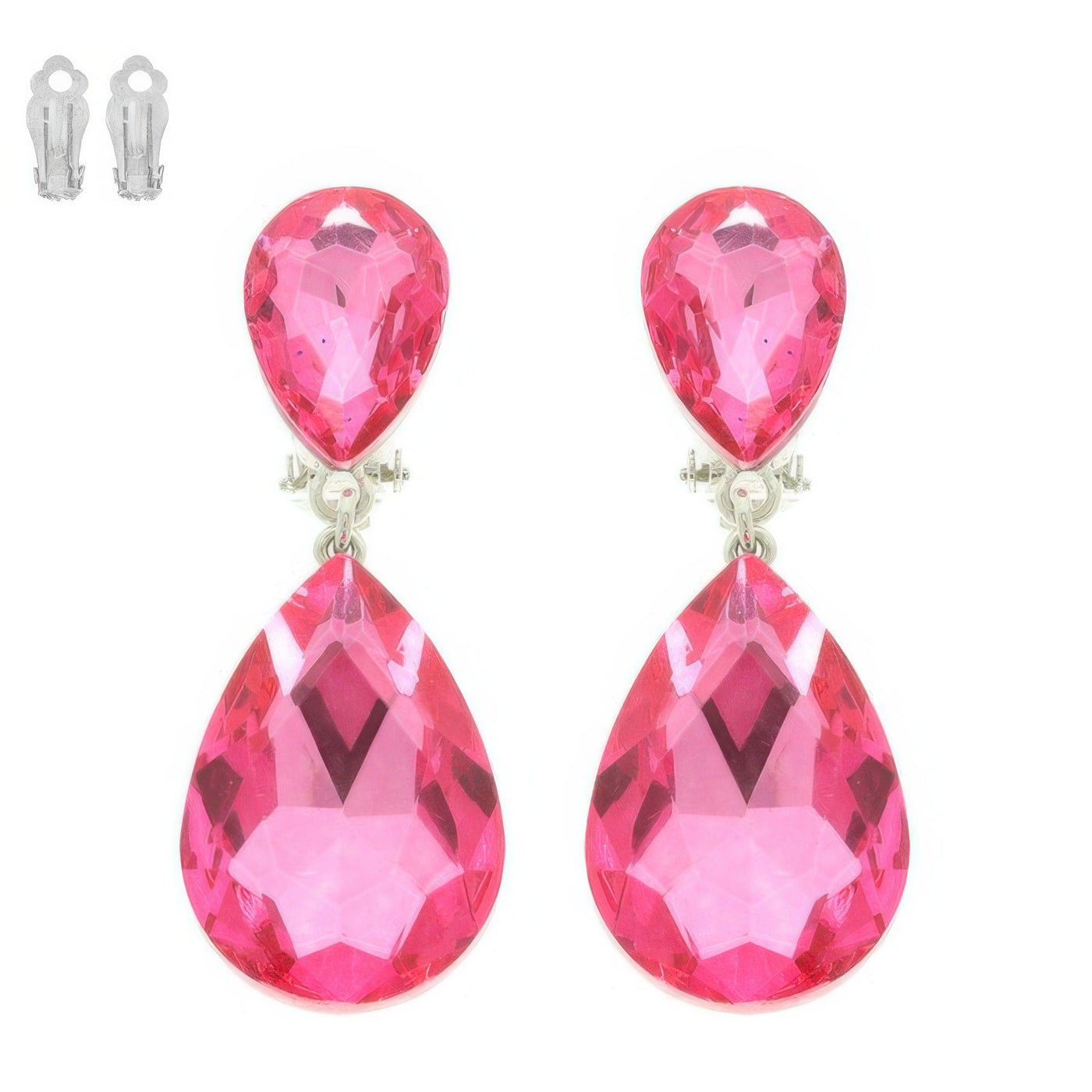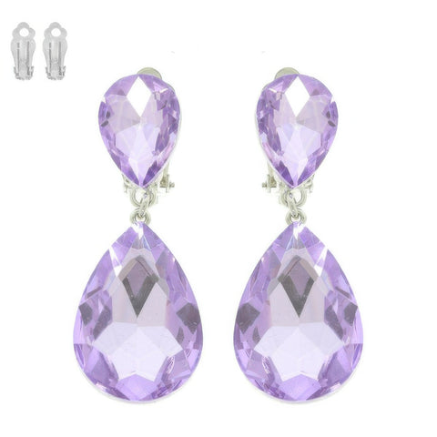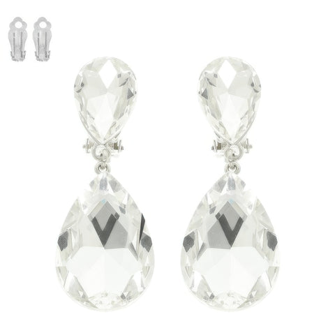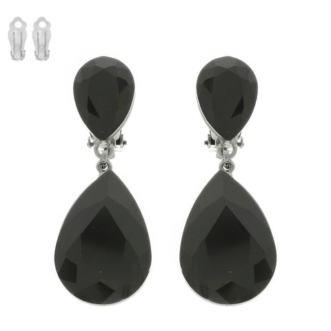 Teardrop-cut Crystal Clip On Earrings - Black.Bjt