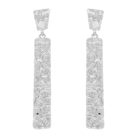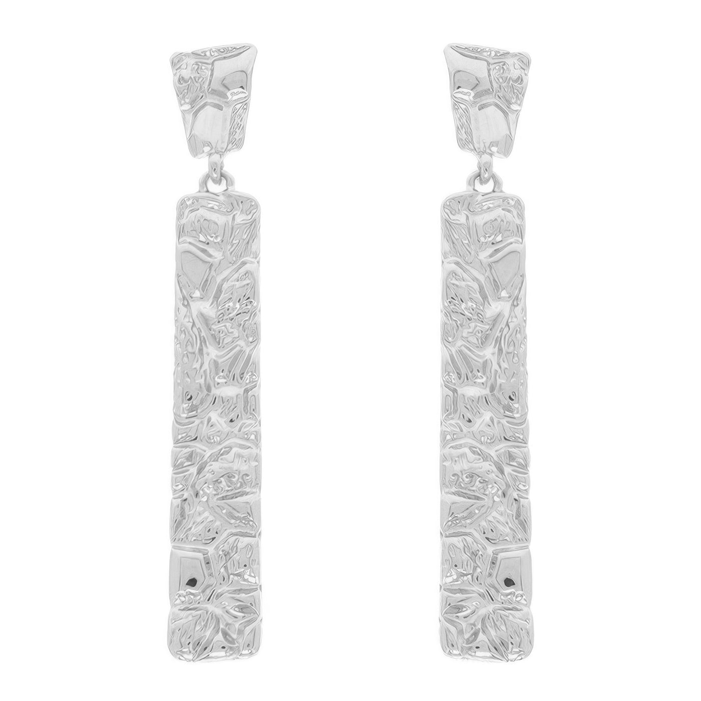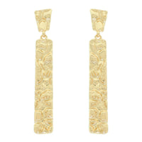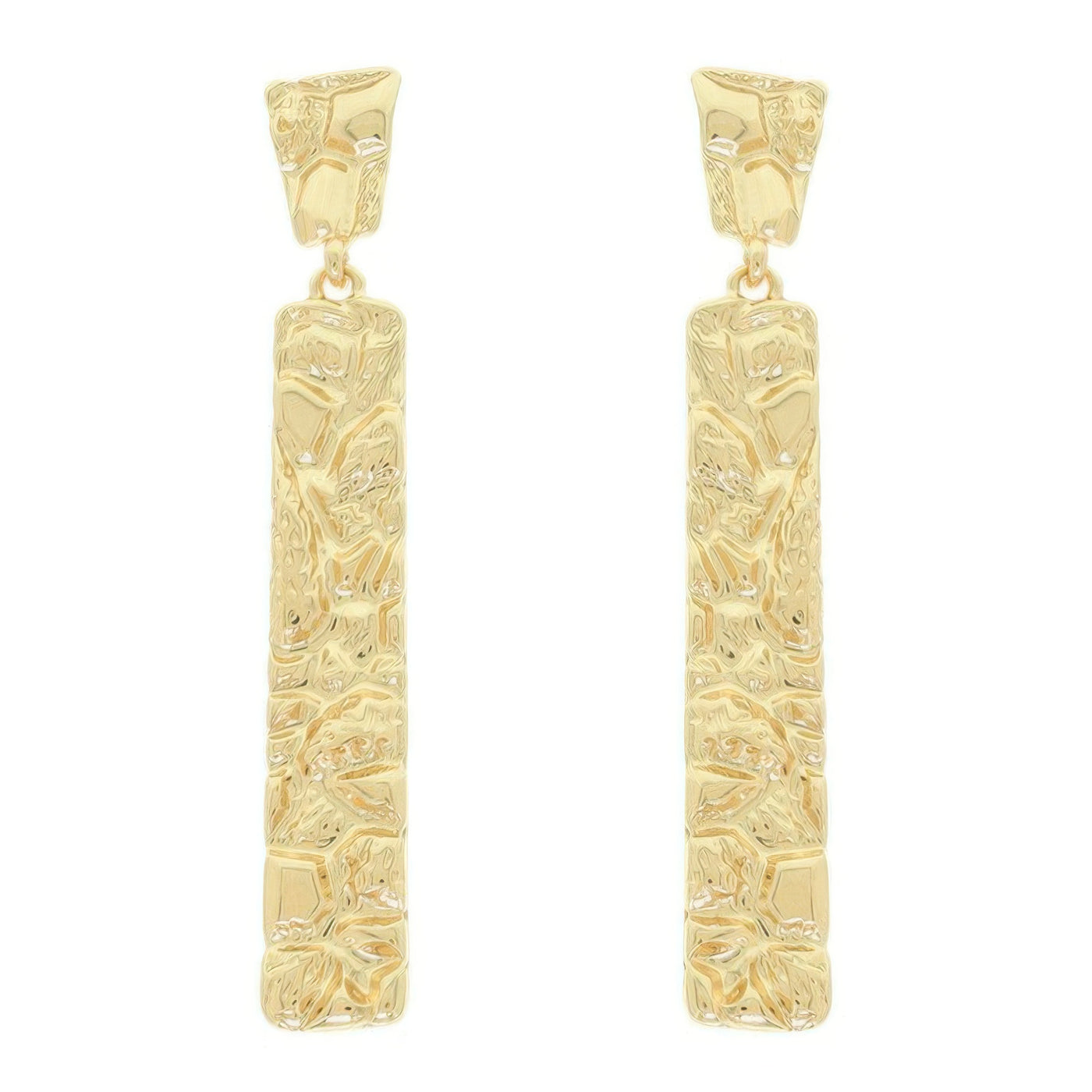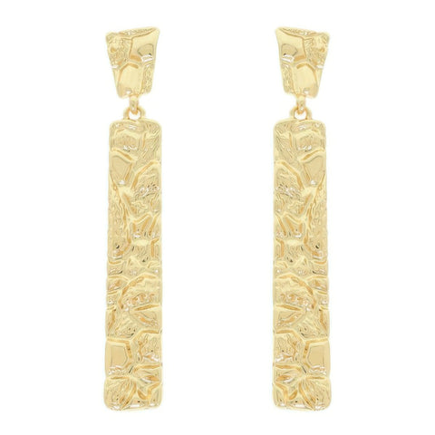 Product Description: Add a modern edge to your accessory collection with these rough finish vertical bar post earrings. Crafted in gold-tone and silver-tone metal, their elongated silhouette and textured surface make a bold yet minimalistic statement. The sleek drop design adds movement and shine, perfect for both casual days and elevated evenings. Despite their statement-making style, they remain lightweight and easy to wear. Their versatile aesthetic complements a wide range of looks—from workwear to formal events. These earrings are an effortless way to enhance your everyday ensemble.