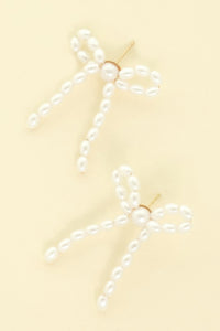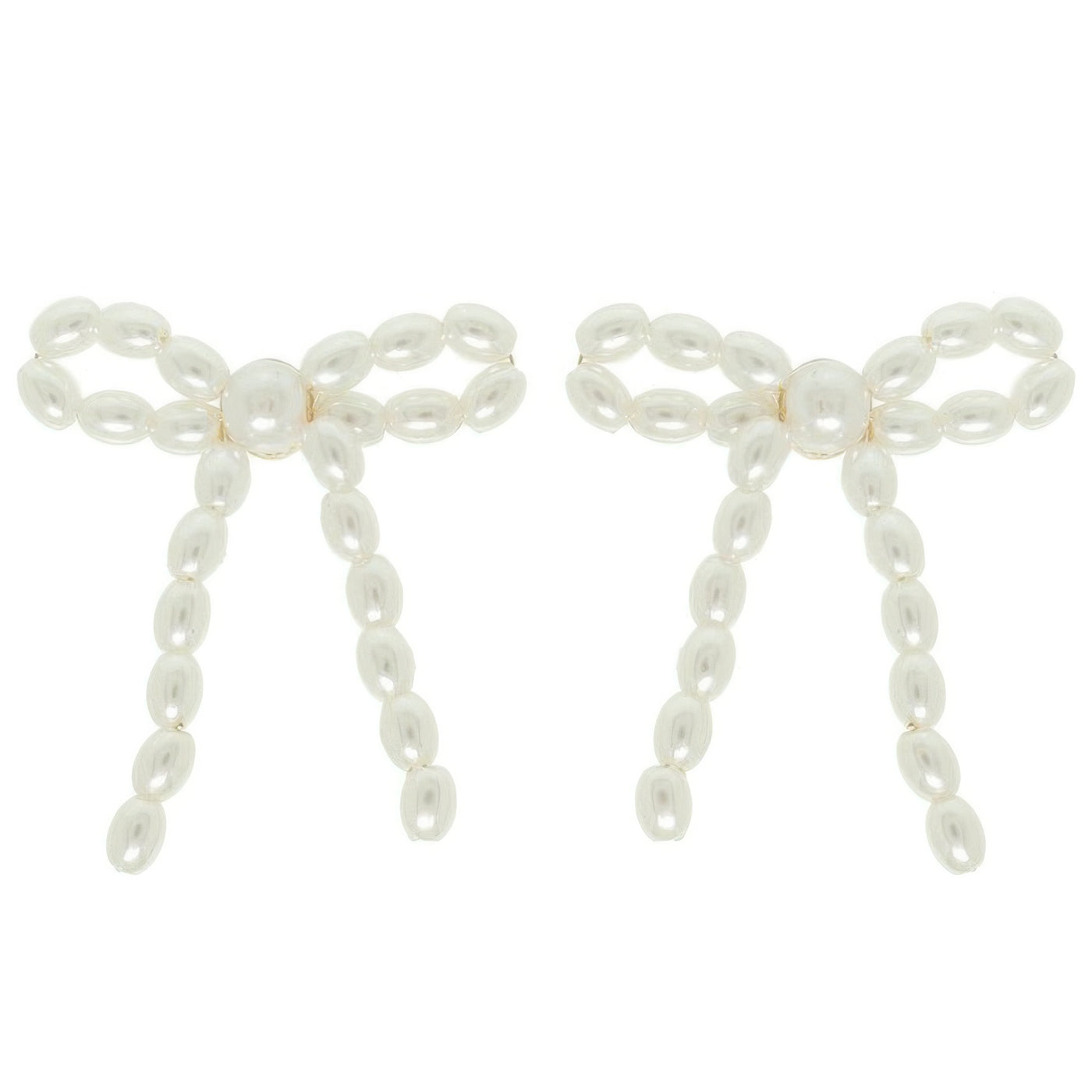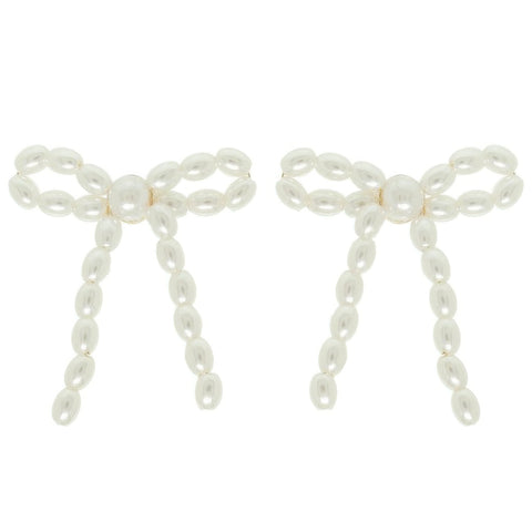 Product Description: Romantic and graceful, these jeweled bow ribbon earrings feature flowing long tails adorned with baroque pearl beading. Crafted in gold-tone metal with a polished finish, they strike a balance between whimsical charm and timeless elegance. Lightweight and comfortable, they make a perfect choice for weddings, celebrations, or gifting. A polished accessory that enhances any special occasion look.