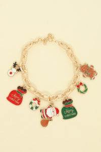 Product Description: This enamel charm bracelet captures the joy of the season with detailed holiday trinkets including Santa, a gingerbread figure, a reindeer, a wreath, and a stocking. Crafted with colorful enamel, it features an extender chain for a customizable fit. Festive and fun, it’s a perfect accessory for holiday parties or a thoughtful seasonal gift.