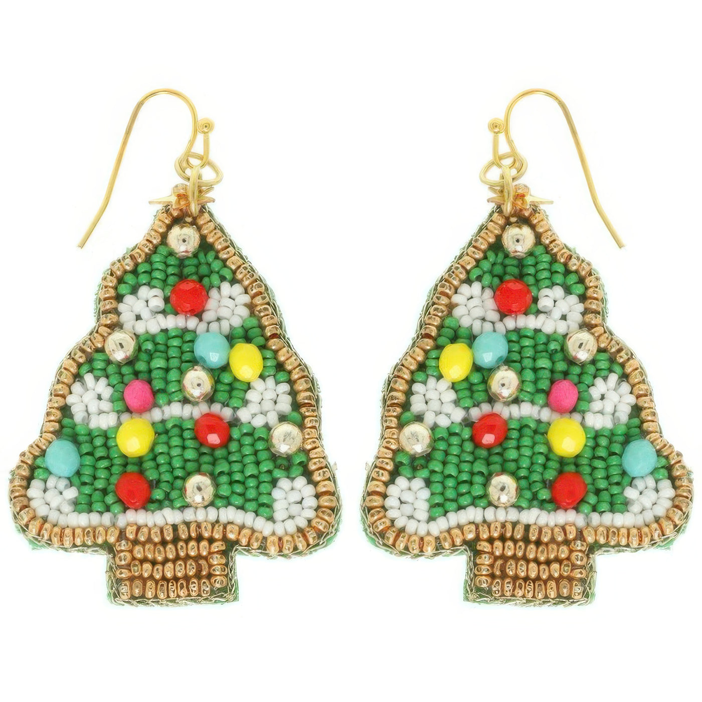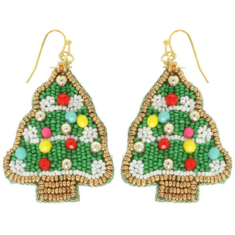 Christmas Tree Beaded Earrings - Multicolor.Gmt
