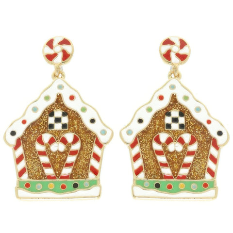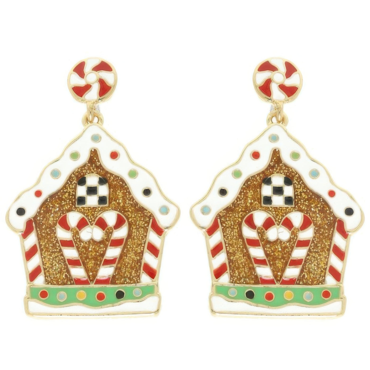 Product Description: Sweeten your holiday style with these enamel gingerbread house earrings. Decorated with colorful rhinestones, they sparkle with festive charm. The lightweight design makes them easy to wear, while the detailed finish ensures they stand out at parties and celebrations. A playful seasonal accessory, they’re perfect for gifting or adding holiday cheer to your look.
