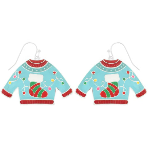 Product Description: Playful and festive, these Christmas ugly sweater earrings bring humor and holiday cheer to your style. Crafted in colorful enamel, they’re lightweight and easy to wear for all your seasonal events. Perfect for office parties, family gatherings, or casual holiday fun, these earrings are a joyful nod to a beloved holiday tradition.