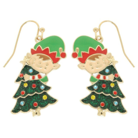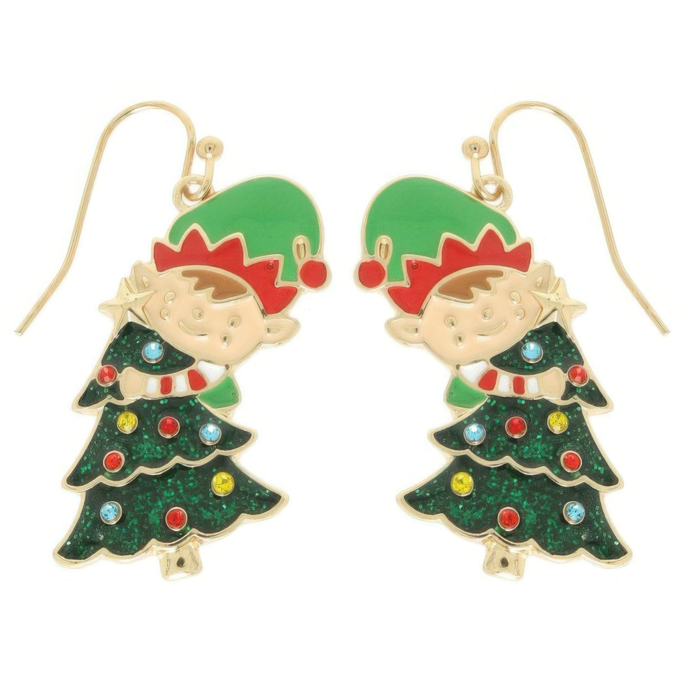 Product Description: Add sparkle to the season with these Christmas tree enamel earrings featuring a cheerful elf design. Rhinestone accents bring shimmering detail, while the lightweight French hooks ensure comfort throughout the festivities. Perfect for parties, dinners, or gifting, these earrings capture the playful joy of the holidays.