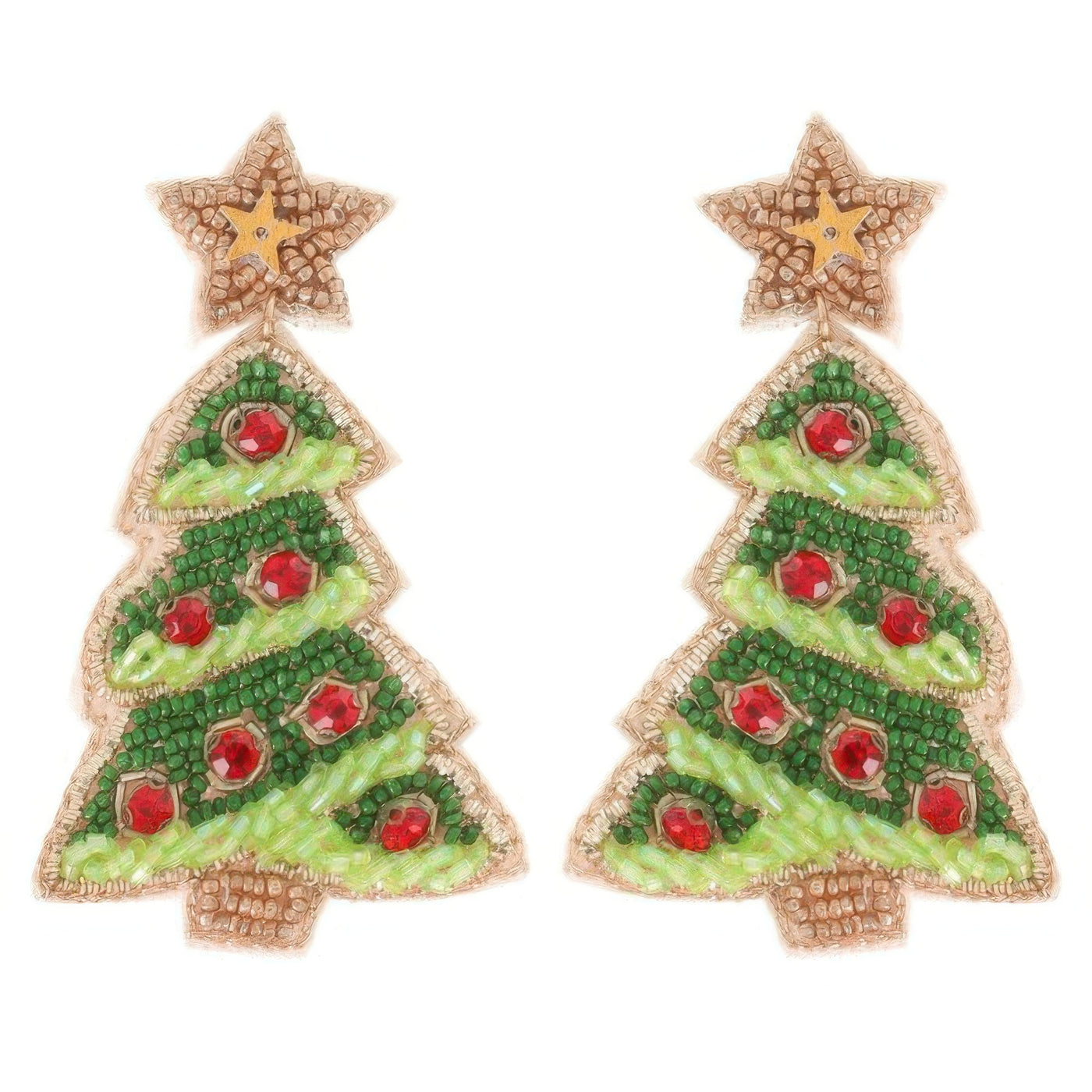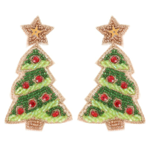 Product Description: Celebrate the season in style with these festive Christmas tree post earrings, handcrafted with colorful seed beads and shimmering crystal accents. Featuring a charming star topper, these lightweight dangle earrings bring a joyful sparkle to any holiday outfit. The playful design adds a pop of personality, whether you're attending a Christmas party, winter gathering, or festive dinner. With a secure post-back closure and cheerful details, they’re the perfect finishing touch for anyone who loves the magic of the holidays. From gift exchanges to seasonal outings, these earrings are made to spread cheer.