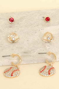 Set of 3 baseball-themed earrings with enamel and crystal detail