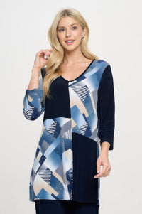 Hit Contrast V-neck Tunic Top - Navy / S