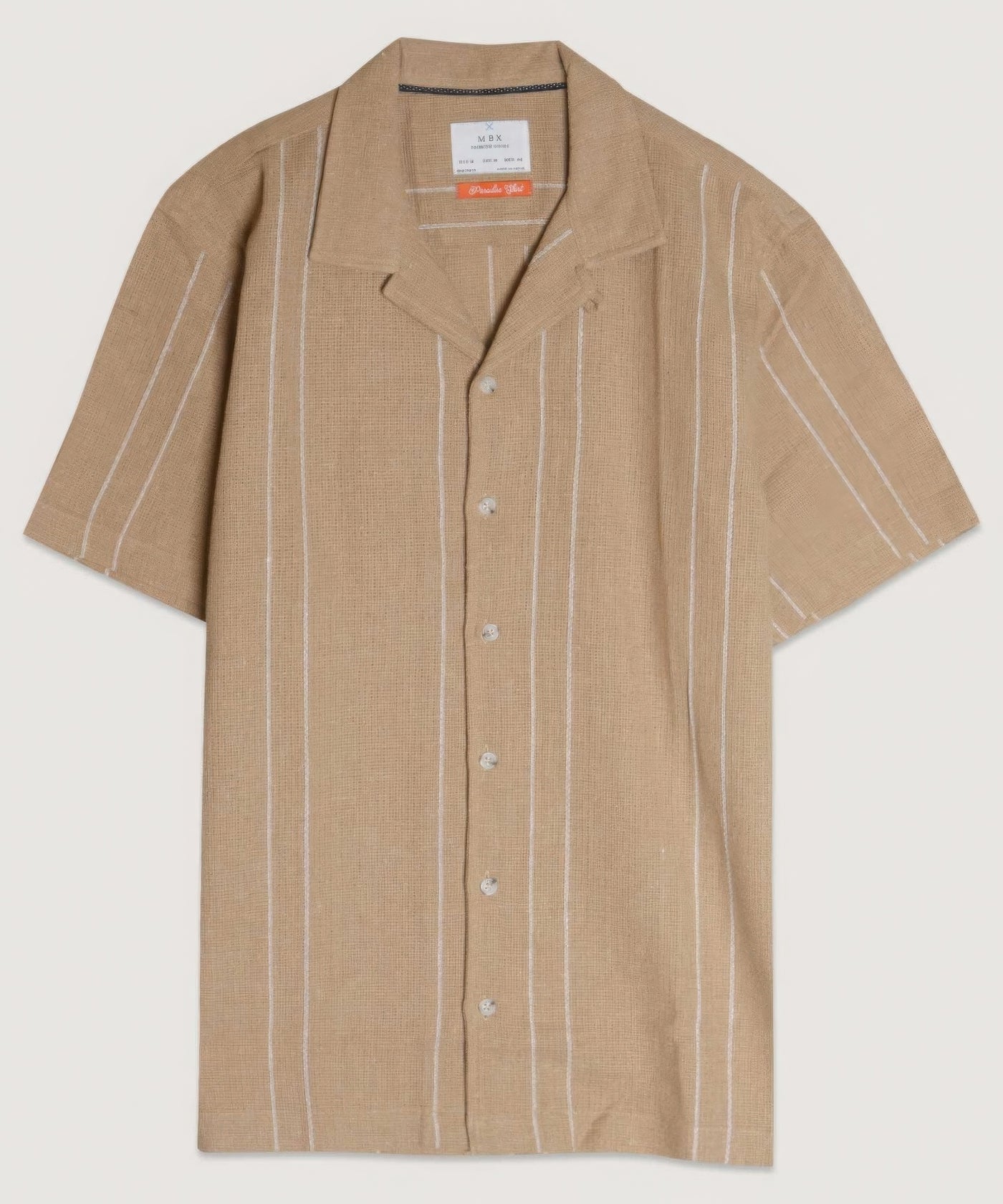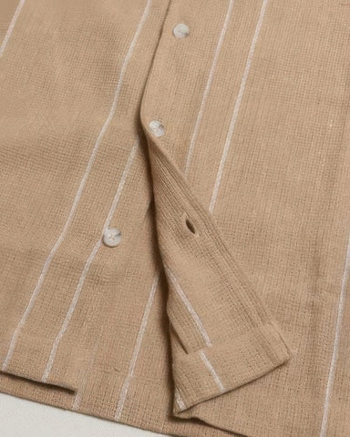 "This shirt is fantastic! The tan and white stripes are classic, and the fabric feels incredibly soft. It become a favorite of mine." - Jack H.