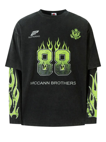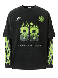 Men's Racing Flame Graphics Layered Long Sleeve T-Shirt Sale