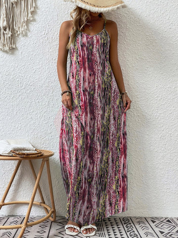 Full Size Printed Scoop Neck Maxi Cami Dress Sale