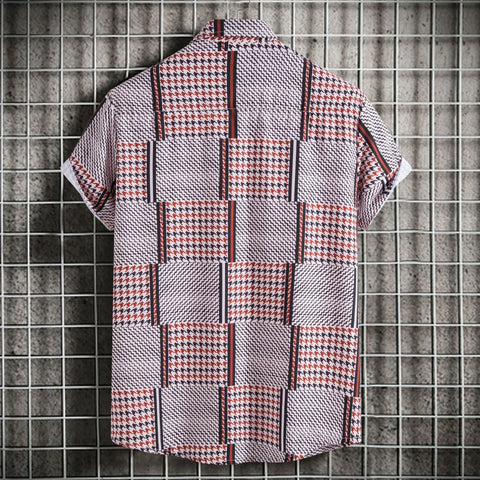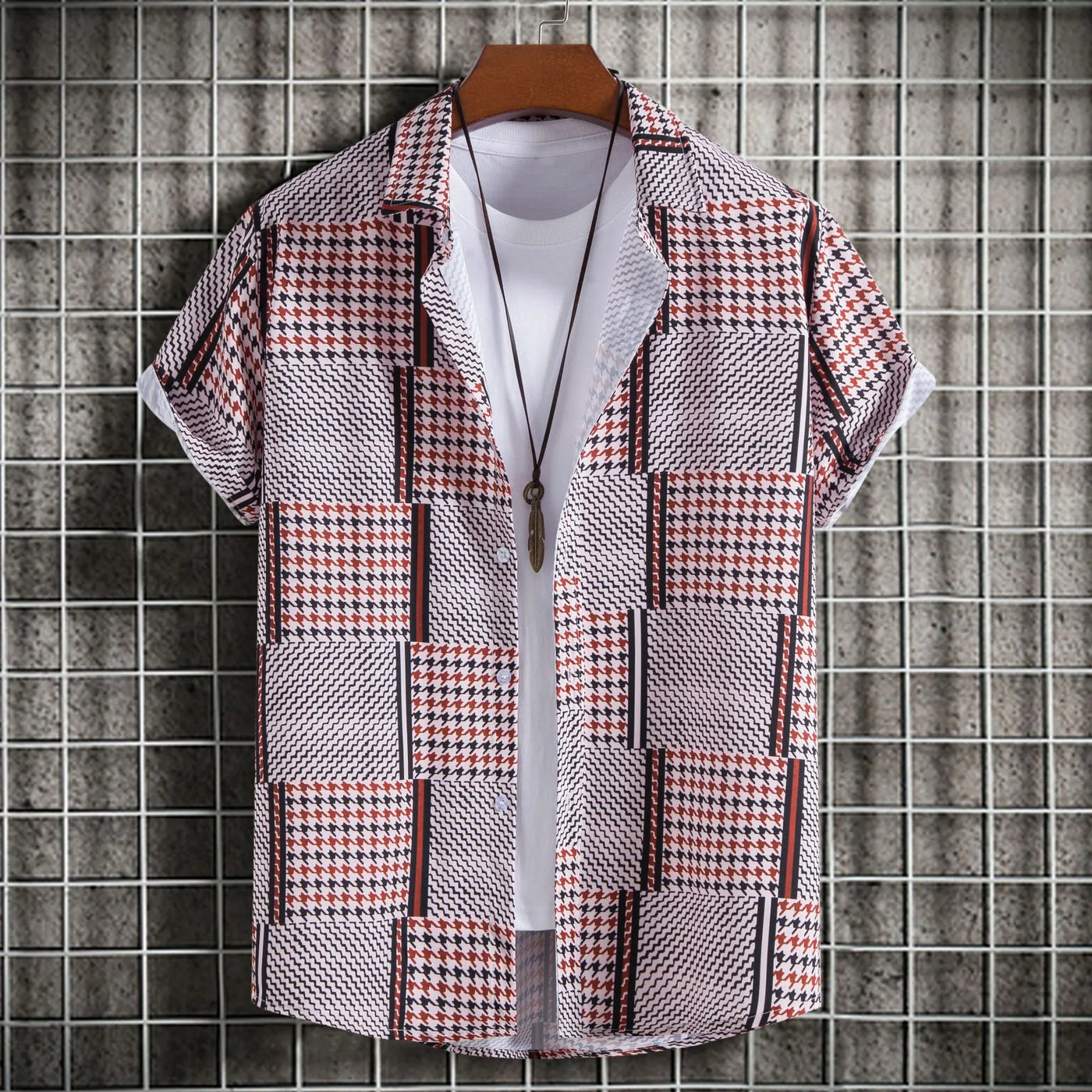 Men's Plus Size Patchwork Plaid Short Sleeve Casual Shirt Sale