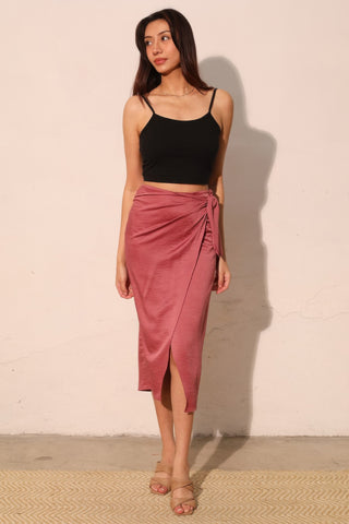 Washed Satin Crepe Side Wrap Midi Skirt Sale