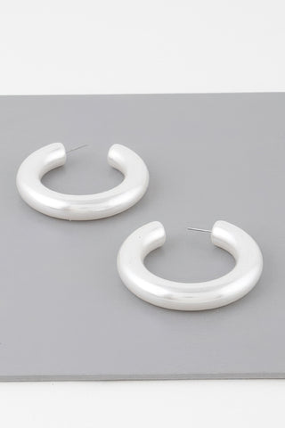 Polished Cream Hoop Earrings - Cream