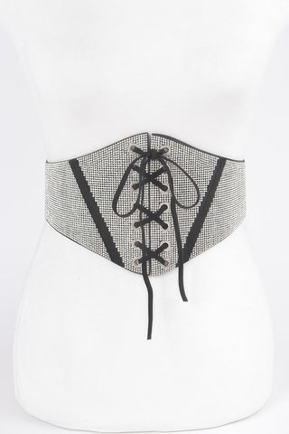 Product Description: This plus size rhinestone corset belt offers a slimmer take on bold waist definition. Designed with a structured front, it enhances the silhouette with refined sparkle. Rhinestone accents add shine while maintaining a polished look. Elastic construction ensures flexibility and comfort throughout wear. The corset-inspired design pairs easily with dresses, tunics, and layered outfits. Lightweight materials prevent bulk while maintaining structure. This belt delivers confident style with everyday versatility.