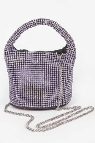 Product Description: Oversized Stone Small Bucket Bag delivers standout style with its compact silhouette and eye-catching finish. Designed to shimmer, this bag adds a glam touch to your evening or party look. Crafted from Rhinestone, Mixed Metal, the design ensures durability with a luxe finish. Measuring approximately 6.5 x 6 x 4 inches, it's perfectly sized for easy wear. Compact yet impactful, it's ideal for when you want to carry just the essentials in style. Pair it with anything from jeans to dresses to elevate your overall look.