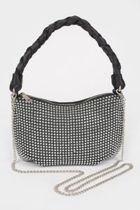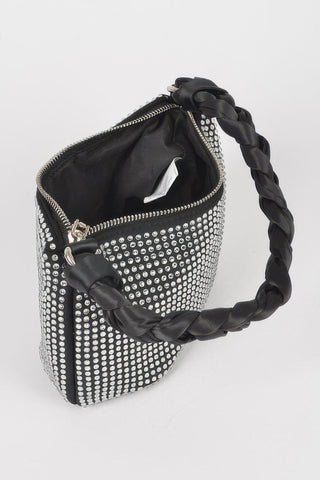 Hot Fix Stone Twisted Handle Small Hobo Bag - Black